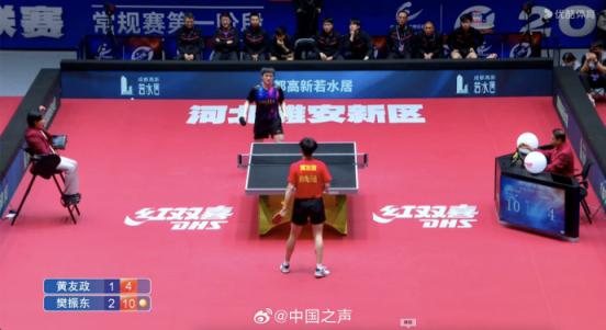 2025乒超第一阶段山东魏桥对阵上海地产集团的比赛中,樊振东3:1战胜对手黄友政,斩获乒超七连胜。继续加油!